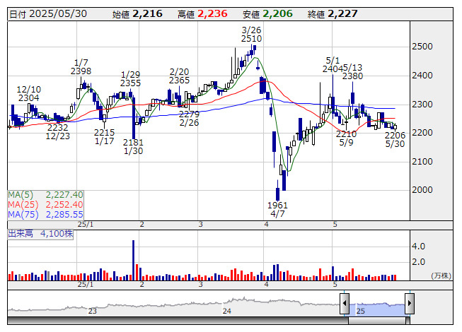 湖北工業 <6524> 2,200 +150 ( +7.3%) 19,100 ( 4,202) 19,100 ( 4,202)