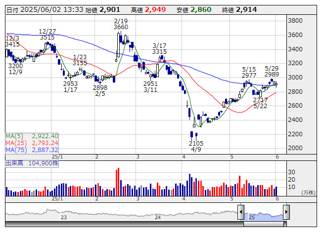 RSテクノ <日足> 「株探」多機能チャートより■財務省 : 6月2日受付