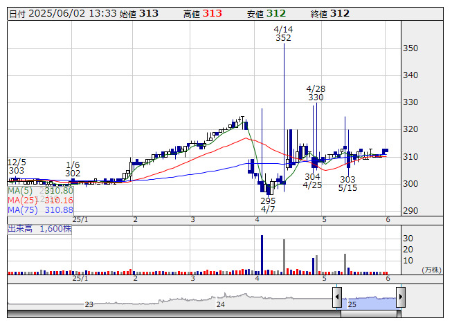 石井食 <日足> 「株探」多機能チャートより■財務省 : 6月2日受付