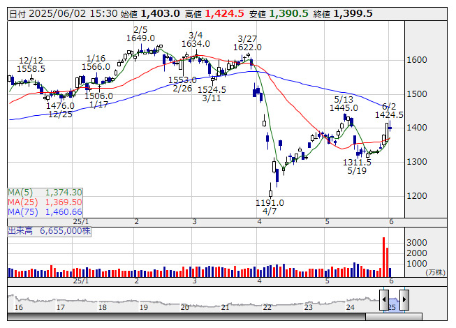 銘柄名 株価 前日比 (比率) 5日移動平均 25日移動平均
