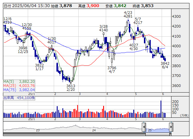 阪急阪神 <日足> 「株探」多機能チャートより■財務省 : 6月4日受付