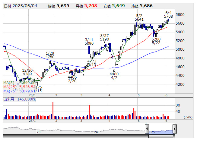 アインHD <日足> 「株探」多機能チャートより1)本日(6月4日)引け後に発表された決算・業績修正