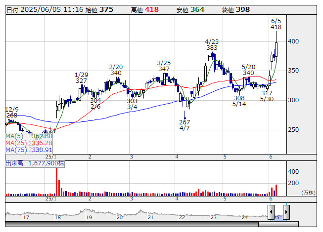 3541>が急反発した。同社は5日午前11時、クボタ<