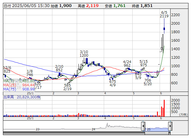 データセク <日足> 「株探」多機能チャートより■財務省 : 6月5日受付