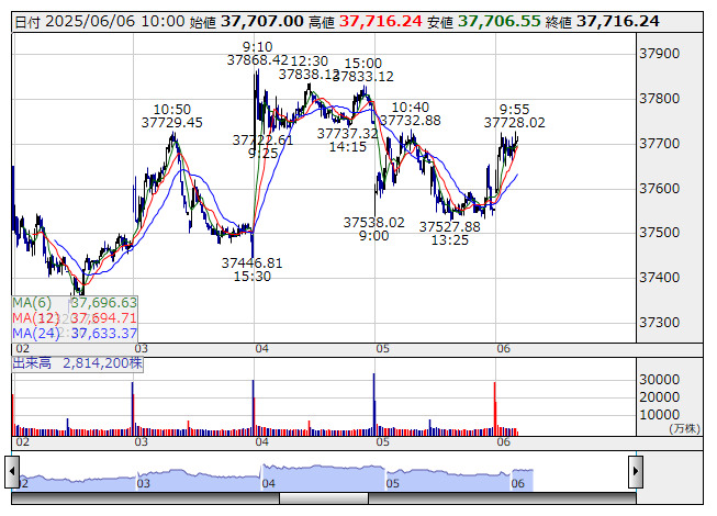 【市況】10時の日経平均は152円高の3万7707円、中外薬が28.24円押し上げ