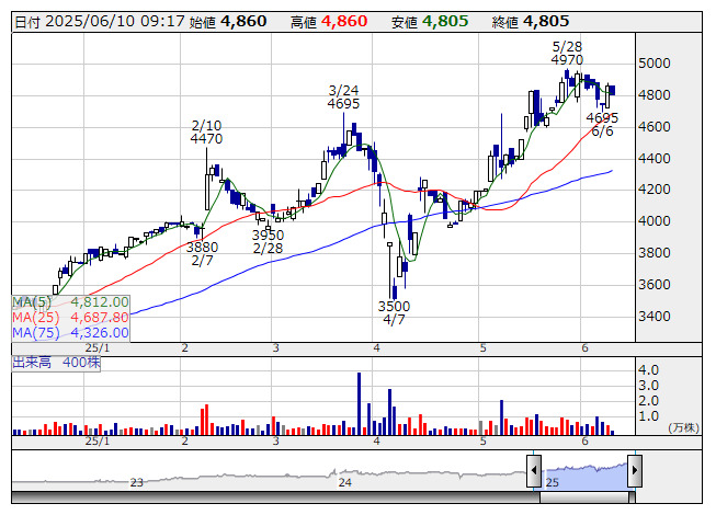 協立電機 <日足> 「株探」多機能チャートより■財務省 : 6月10日受付