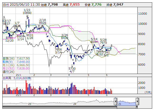 <9984> ソフトバンクグループ 7947 +217 ( +2.8%) 10