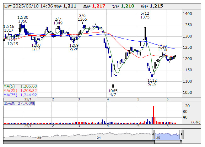シモジマ <日足> 「株探」多機能チャートよりシモジマ<7482>の2025年3月期業績は、売上高が前期比5.0%増の606.80億円、営業利益が同8.5%減の29.86億円、経常利益が同8.8%減の33.03億円となった。売上高は過去最高となった。環境配慮型商品市場へ浸透、通信販売(EC)が好調だった。 売上総利益は、為替の円安傾向やコストアップ要因(原料高、人件費および物流費増加)があり、前期比1.2ポイント悪化し32.0%となった。販売管理費は優秀な人材確保を目的とする人件費の増加により、前期比3.4%増の164.49億円となった。
