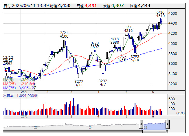 カプコン <日足> 「株探」多機能チャートより11日の東証プライム市場でカプコンが3日ぶりに反落。同社はきょう午前10時頃に23年に発売した「ストリートファイター6」の累計販売本数が、全世界で500万本を達成したと発表。また、任天堂<7974>の新型ゲーム機「Nintendo Switch2」にも展開しており、ファン層の拡大を図ることも表明した。同社の26年3月期の業績は最高益見通しと好調であり株価も最高値圏にあるが、市場では利益確定売りも警戒されている。