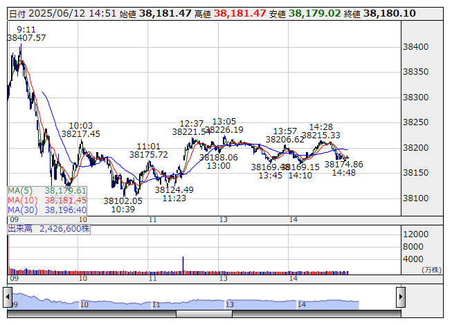 日経平均は戻りの鈍い展開が続いている。今日はこの後、タイミー<215A>、神戸物産<3038>などが決算発表を予定している。米国では今晩、5月の米生産者物価指数(PPI)、週間の米新規失業保険申請件数が発表され、また、米30年物国債の入札が実施される。