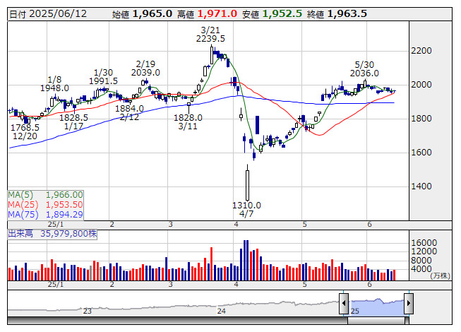 <7203> トヨタ 476323 ( 1,904) 2,500.5 -116 ( -4.4%)