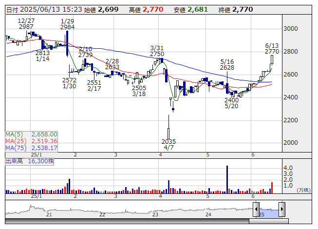 2025年7月期通期については、売上高が前期比22.3%増の57.22億円、営業利益が同97.7%増の1.11億円、経常利益が同59.7%増の1.01億円、親会社株主に帰属する当期純利益が同821.2%増の2.31億円とする12月20日に修正した連結業績予想を据え置いている。