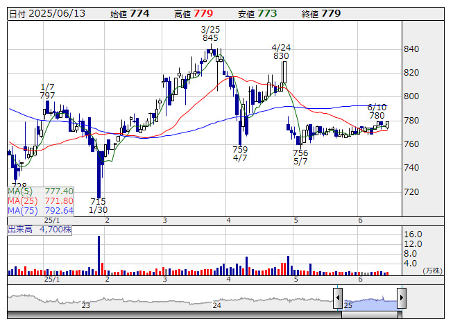 発行済み株式数(自社株を除く)の3.27%にあたる55万株(金額で3億円)を上限に自社株買いを実施する。買い付け期間は6月16日から8月15日まで。