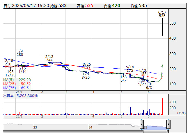 【材料】本日のランキング【値上がり率】 (6月17日)