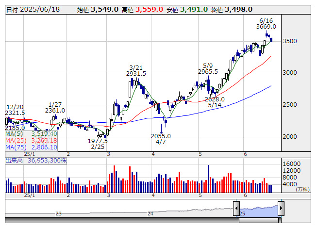 17日ストップ高。18日は利益確定売り先行。