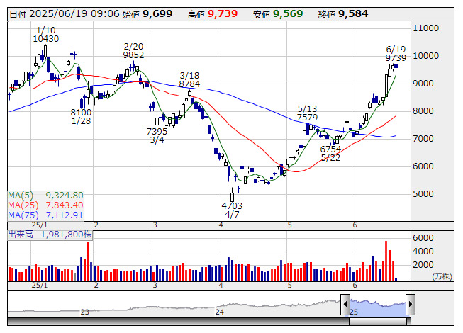 1. <6857> アドテスト 東証P 5,019 9586 ( -0.8 ) 日経225・JPX日経400採用