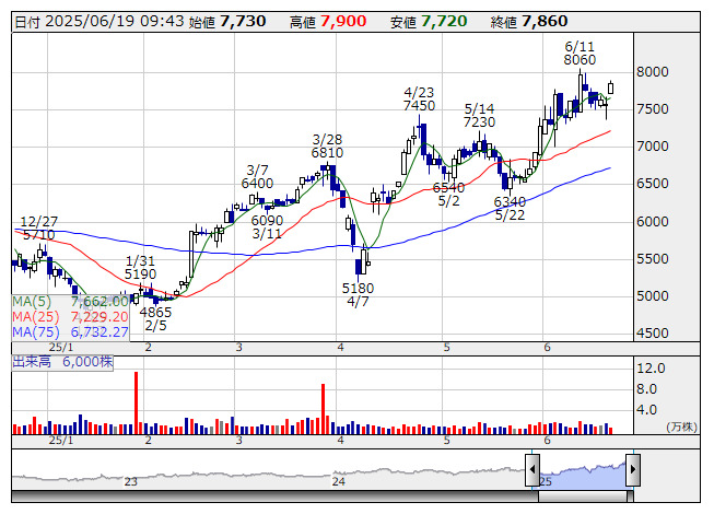 2025年06月19日09時30分 【材料】三谷セキは大幅反発、ToSTNeT-3で自社株買いを実施 三谷セキ <日足> 「株探」多機能チャートより 三谷セキサン<5273>が大幅反発となっている。18日の取引終了後、発行済み株式数の1.19%にあたる25万株、または18億9500万円を上限に、19日朝の東証の自己株式立会外買付取引「ToSTNeT-3」で自社株買いを実施すると発表しており、これが材料視されているようだ。なお、東証の自己株式立会外買付取引情報によると、19日付で18万9000株の取得を完了している。 出所:MINKABU PRESS