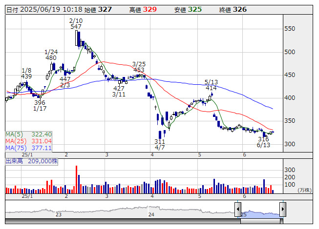 日本CMK <日足> 「株探」多機能チャートより■財務省 : 6月19日受付