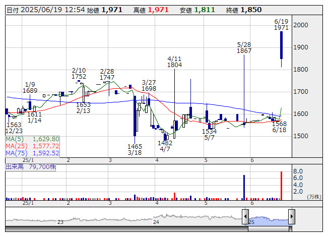 2025年06月19日12時54分 【材料】協立情報通信---大幅高で20年8月以来の高値、大幅増益見通しで買い安心感 協立情報通信 <日足> 「株探」多機能チャートより 協立情報通信<3670>は大幅高。年初来高値を更新して、一時は20年8月以来の高値水準にまで上昇。未定としていた26年3月期の業績・配当予想を前日に公表している。営業利益は3.6億円で前期比20.8%増の見通し、年間配当金は前期比横ばいの55円を計画している。25年3月期営業増益率は5.4%であったため、増益率の拡大見通しを受けて買い安心感が先行しているようだ。 《ST》 提供:フィスコ