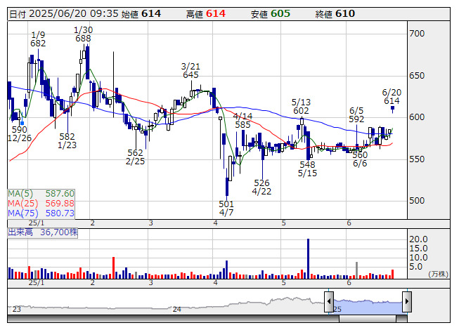 アソインター <日足> 「株探」多機能チャートより