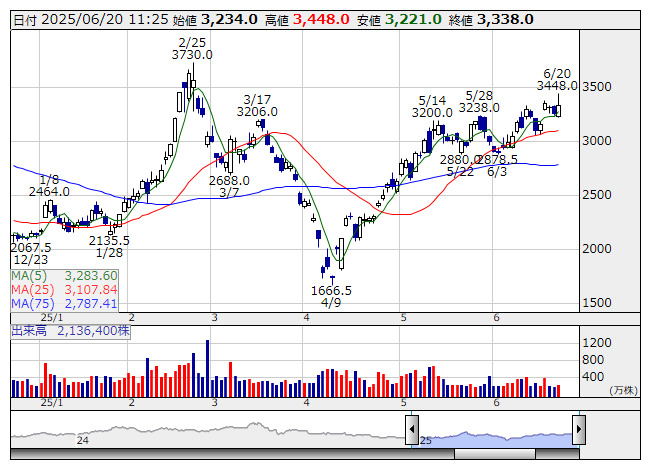 コクサイエレ <日足> 「株探」多機能チャートより■財務省 : 6月20日受付