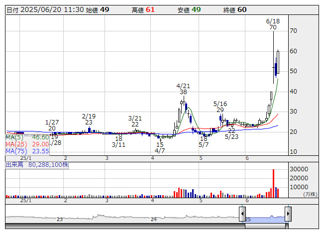 【材料】前場のランキング【寄付からの値上がり率】 (6月20日)