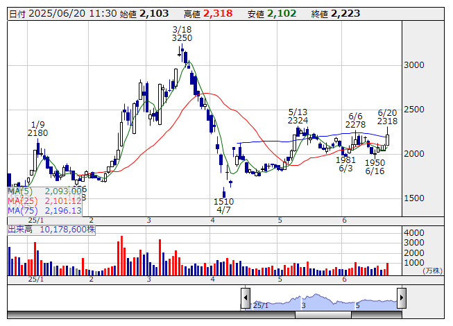 <202A> 豆蔵デジHD 1773 +43 ( +2.5%)