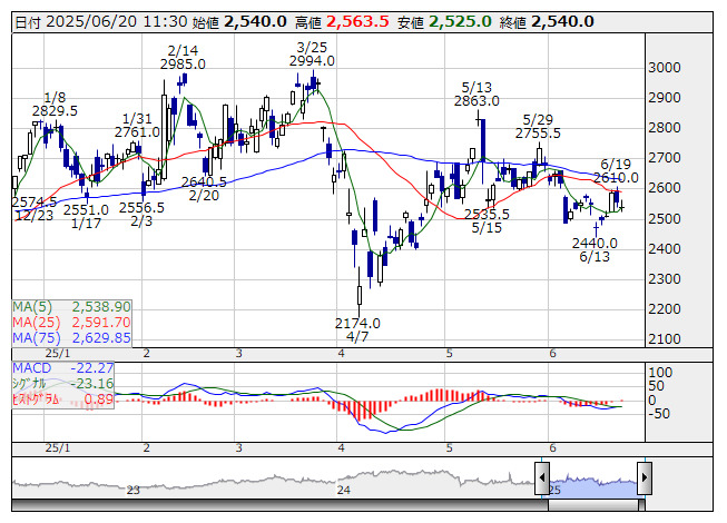 <4182> 三菱ガス化学 2167.5 +2.5 ( +0.1%) 6.8
