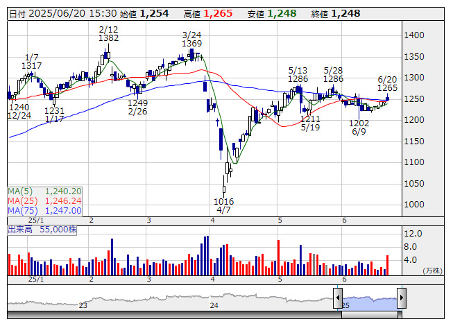 東京綱 <日足> 「株探」多機能チャートより本特集では、プライム市場の銘柄の中で株価が25日移動平均線を上抜いた銘柄に注目。その中から予想PERがプライム市場平均の 15.3倍を下回る上昇余力があるとみられる 31社をピックアップしました。