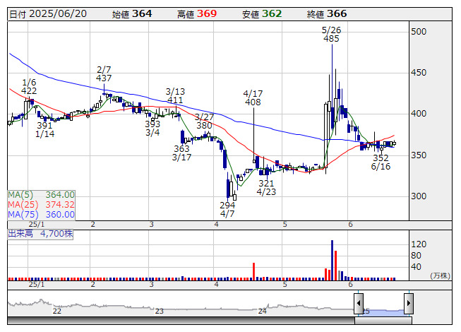 Gキッズ <6189> 699 +9 ( +1.3%) 6,700 ( 469) 4,300 ( 300)