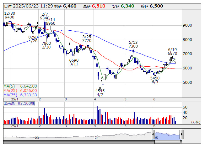 良好な業績見通しを示しているものの、前期までと比べやや成長が鈍化したとの見方もあり、足もとの株価は底堅く推移しつつも上昇基調には入れていない。これを受け、目先売りを予想する向きが増えたようだ。
