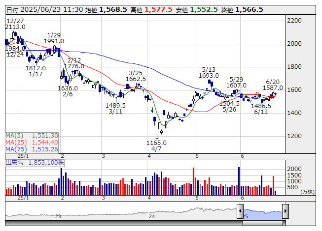 <2792> ハニーズHD 1580 +23 ( +1.5%) 1544.8 1541.2