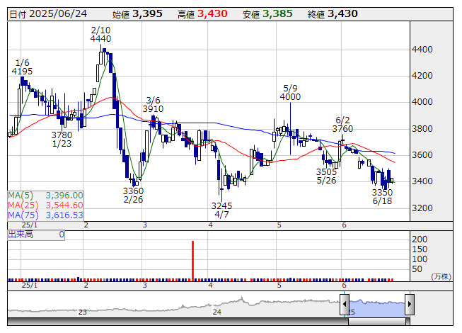 リズム <日足> 「株探」多機能チャートより