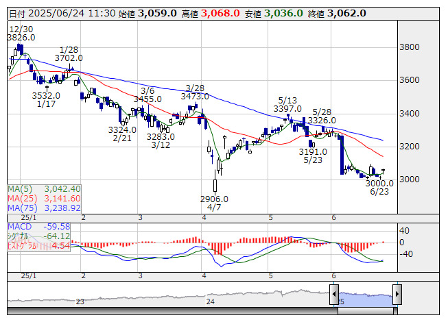 銘柄名 株価 前日比 (比率) MACD