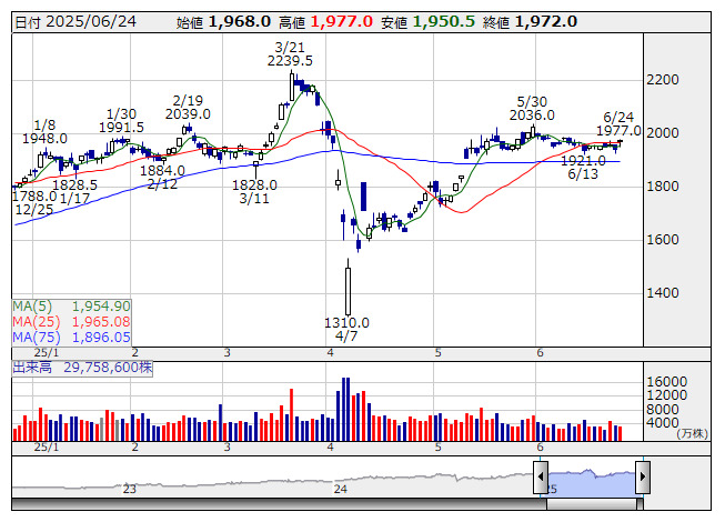 <6532> ベイカレント 6293 ( 8) 7,151 -135 ( -1.9%)