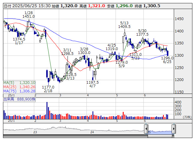 ポーラHD <日足> 「株探」多機能チャートより■財務省 : 6月25日受付