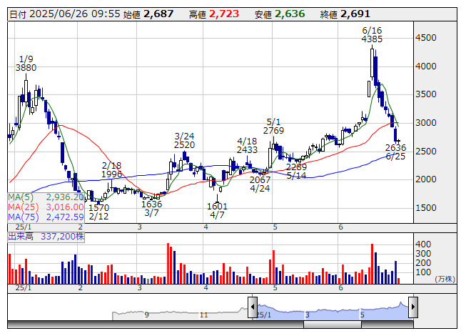 ハートシード <日足> 「株探」多機能チャートより■財務省 : 6月26日受付