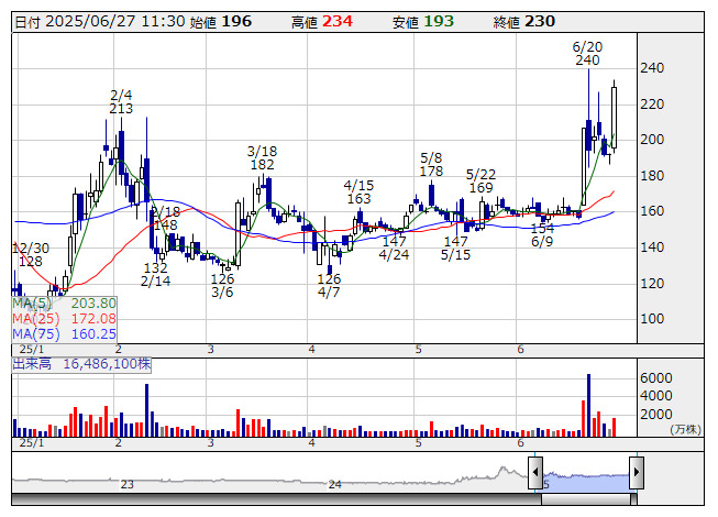 【材料】前場のランキング【寄付からの値上がり率】 (6月27日)