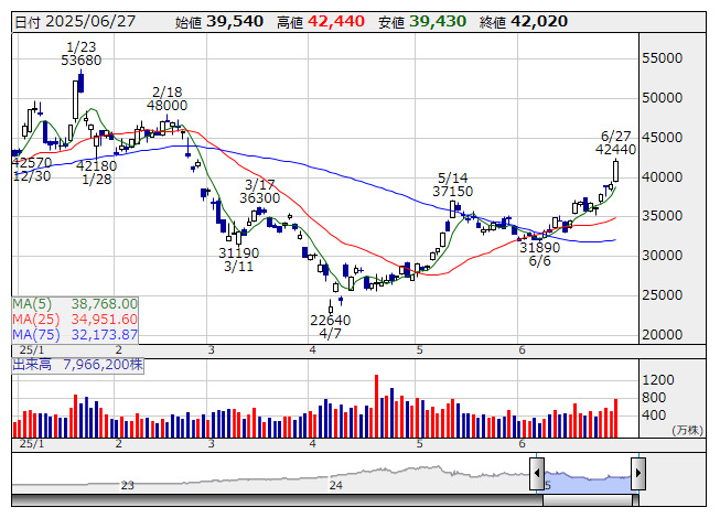 ディスコ <日足> 「株探」多機能チャートより(東証上場 4256 銘柄対象[ETF、REIT含む])
