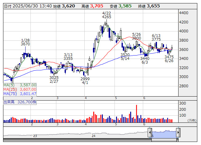 2025年06月30日13時40分 【材料】パルHDが3日続伸、既存店売上高が2カ月ぶり前年上回る パルHD <日足> 「株探」多機能チャートより パルグループホールディングス<2726>が3日続伸している。午後1時ごろに発表した5月度の月次売上概況で、既存店売上高が前年同月比0.1%増となり、小幅ながら2カ月ぶりに前年実績を上回ったことが好感されている。ネット通販既存店売上高が同6.2%増と伸長したことが牽引した。なお、全店売上高は同14.2%増だった。 出所:MINKABU PRESS
