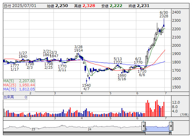 【材料】日本コンセプがS高カイ気配、MBO実施でTOB価格3060円にサヤ寄せ