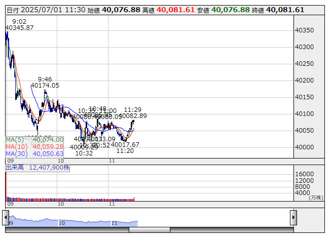 日経平均 <1分足> 「株探」多機能チャートよりきょう前場の東京株式市場は利益確定売り圧力が表面化し、日経平均株価は大幅反落となった。前日まで日経平均は5日続伸し2100円も水準を切り上げていたこともあり、きょうは利益確定売り圧力が顕在化した。これまで全体相場を牽引していた半導体の主力株の一角が反動安に見舞われたほか、日経平均寄与度の高い値がさ株の下げが影響した。前日の米株市場はNYダウ、ナスダック総合株価指数ともに上昇しており、これは追い風材料ではあるものの、一方で日米の関税交渉の先行きに対する懸念が投資家のセンチメントを冷やしている。値下がり銘柄数は全体の7割強を占めた。