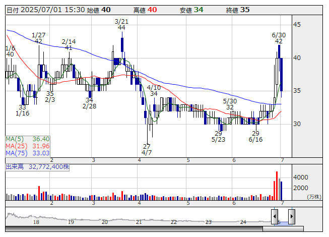 ソレイジア <日足> 「株探」多機能チャートより■財務省 : 7月1日受付