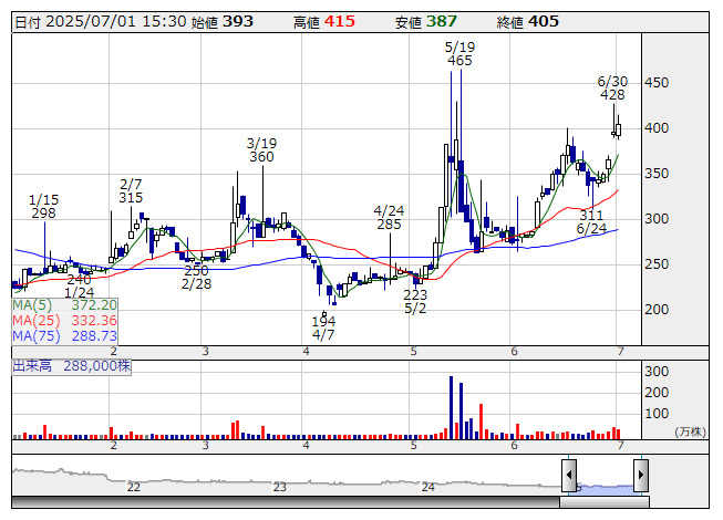 イーロジット <日足> 「株探」多機能チャートより■財務省 : 7月1日受付