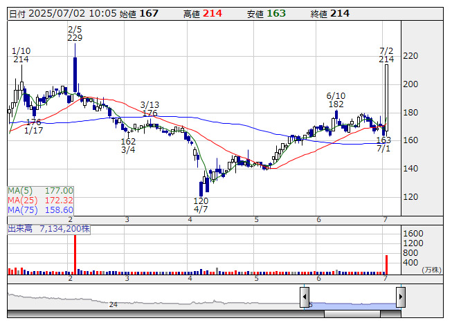 【材料】前場のランキング【寄付からの値上がり率】 (7月2日)
