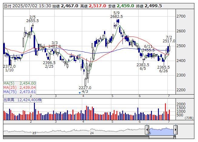 <9433> KDDI 2499.5 +43.5 ( +1.8%) 2454.0 2439.0