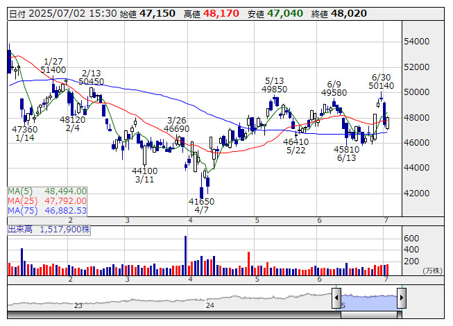 2025年07月02日16時15分 【材料】ファストリの6月国内ユニクロ既存店売上高は2カ月連続前年上回る ファストリ <日足> 「株探」多機能チャートより ファーストリテイリング<9983>がこの日の取引終了後、6月度の国内ユニクロ売上速報を発表しており、既存店とEコマースを合わせた売上高は前年同月比6.4%増と2カ月連続で前年実績を上回った。 気温とキャンペーンがマッチし夏物商品の販売が好調だったことに加え、需要を捉えた新商品の販売が好調だった。なお、客数が同7.4%増となった一方、客単価は同0.9%減となった。 出所:MINKABU PRESS