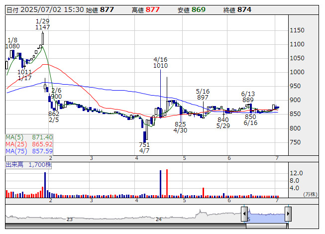 ストレジ王 <日足> 「株探」多機能チャートより■財務省 : 7月2日受付