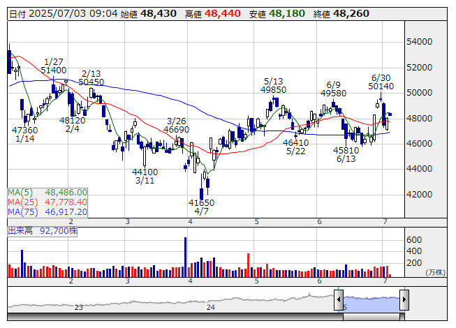 2025年07月03日09時04分 【材料】ファストリが続伸、6月国内ユニクロ既存店売上高が2カ月連続で前年上回る ファストリ <日足> 「株探」多機能チャートより ファーストリテイリング<9983>が続伸している。2日の取引終了後に発表した6月度の国内ユニクロ売上速報で、既存店とEコマースを合わせた売上高が前年同月比6.4%増と2カ月連続で前年実績を上回ったことが好感されている。 気温とキャンペーンがマッチし夏物商品の販売が好調だったことに加え、需要を捉えた新商品の販売が好調だった。なお、客数が同7.4%増となった一方、客単価は同0.9%減となった。 出所:MINKABU PRESS