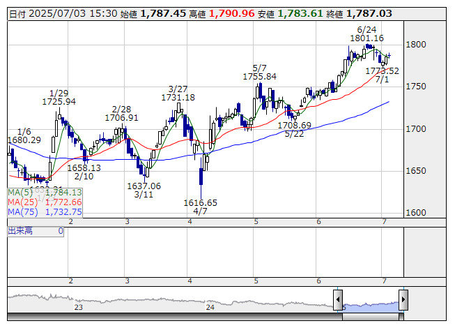 2025年07月03日15時48分 【市況】東証REIT指数先物:3日清算値=3ポイント高、1768ポイント REIT指数 <日足> 「株探」多機能チャートより 3日15時45分、東証REIT指数先物期近2025年9月限は前日清算値比3ポイント高の1768ポイントで取引を終えた。出来高は137枚だった。この日の東証REIT指数の現物終値1787.03ポイントに対しては19.03ポイント安。 株探ニュース